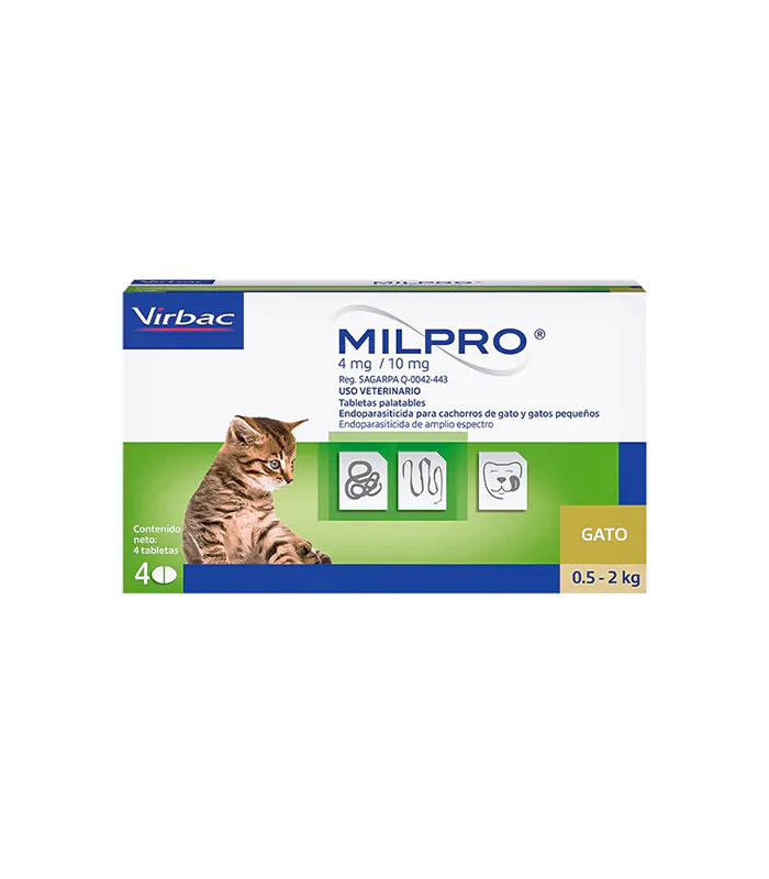 Milpro desparasitante interno gatitos 4mg 4 tabletas